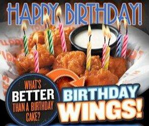 Celebrate your birthday with us and our BIRTHDAY PARTY Wing Special!! Heck you only look and feel half your age. So we will give you half of your wings for FREE!! That's right, if you turn 50 we will give you 25 FREE CHICKEN WINGS, if you are 62 you get 31 FREE CHICKEN WINGS etc.